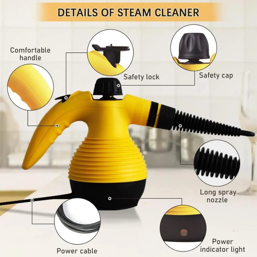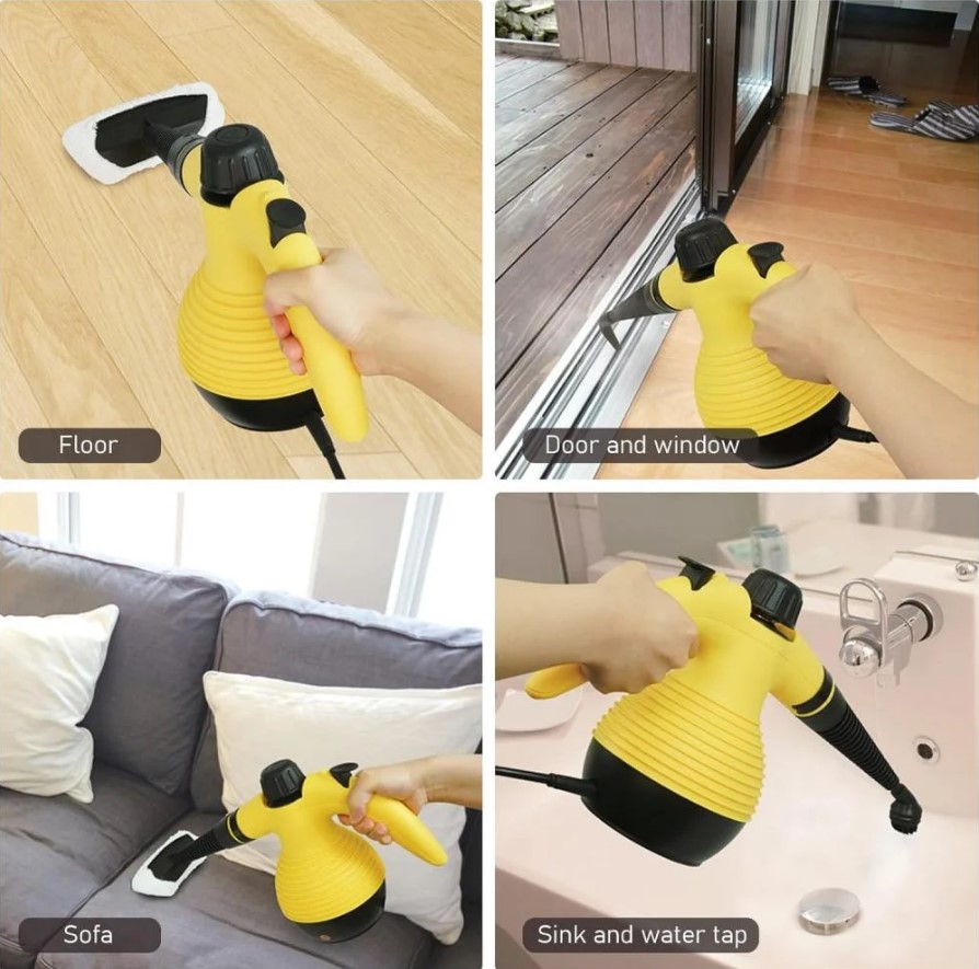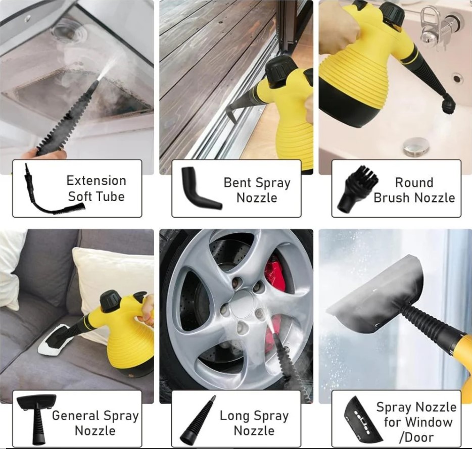 جهاز تنظيف بالبخار بحجم صغير وسهل الحمل. مثالي لتنظيف الزوايا الصعبة والأسطح المتنوعة مثل الزجاج، السيراميك، والمفروشات. يعمل بقوة ضغط بخار عالية تتيح إزالة البقع العنيدة بسهولة.